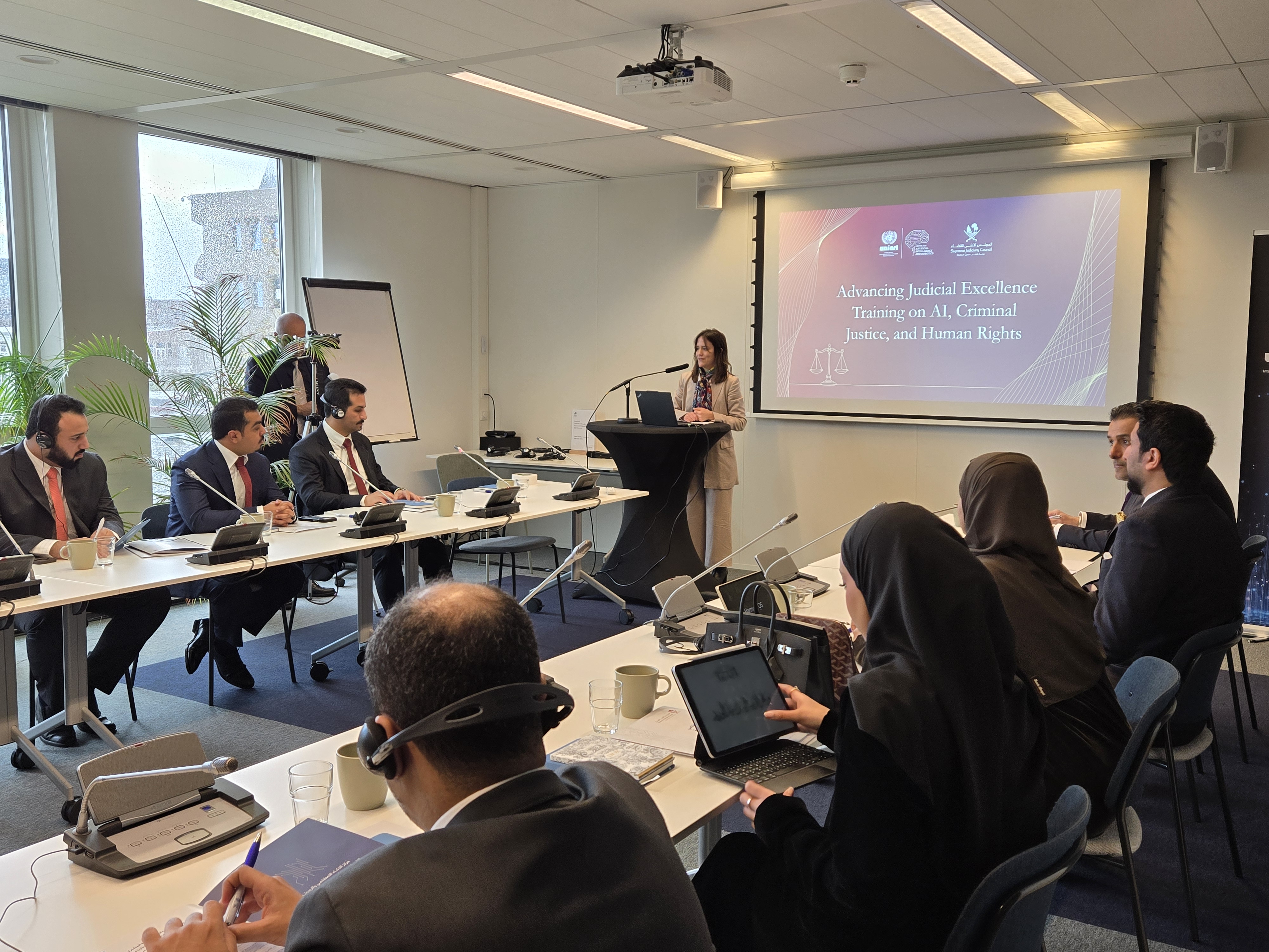 The initiative Advancing Judicial Excellence: Consultations and Mentoring in AI, Criminal Justice, and Human Rights for the Supreme Judiciary Council of the State of Qatar is a collaborative programme between the United Nations Interregional Crime and Justice Research Institute (UNICRI) through its Centre for AI and Robotics and the Supreme Judiciary Council of the State of Qatar. Anchored in the expertise of the AI Centre, the project supports the State of Qatar’s judiciary in strengthening its capacity to navigate the evolving intersection of artificial intelligence (AI), criminal justice, and human rights and to responsibly engage with AI within the criminal justice system. This is achieved through a series of specialized, in-person training sessions for Qatari criminal court judges, held in The Hague, The Netherlands.